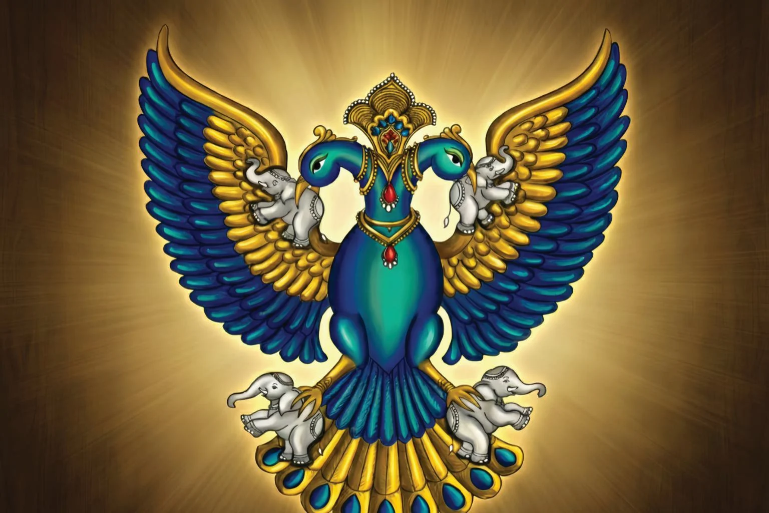 Divine Garuda Canvas Wall Art 5×3 Feet – Floating Frame in Gold – Living Room Wall Décor