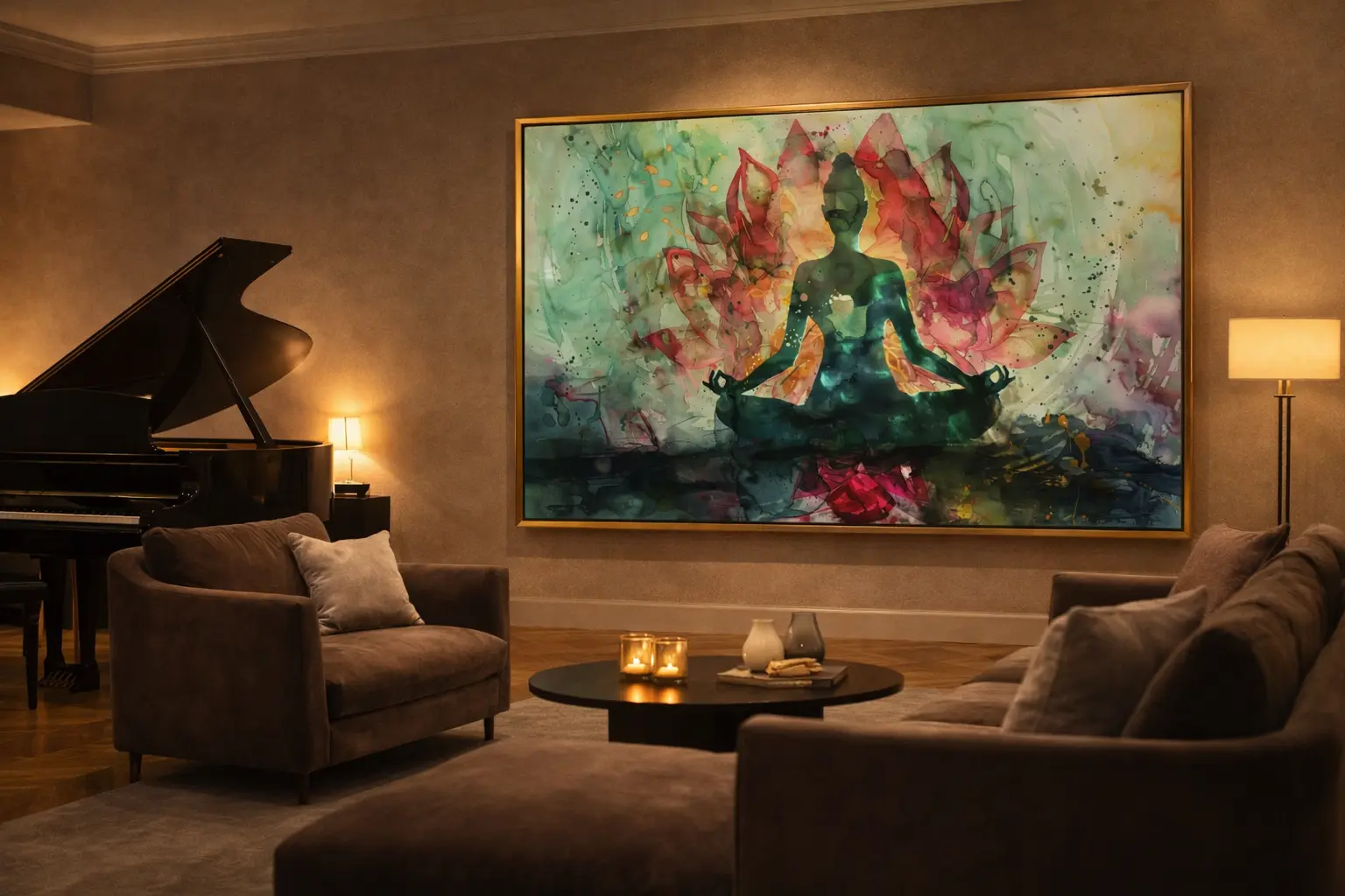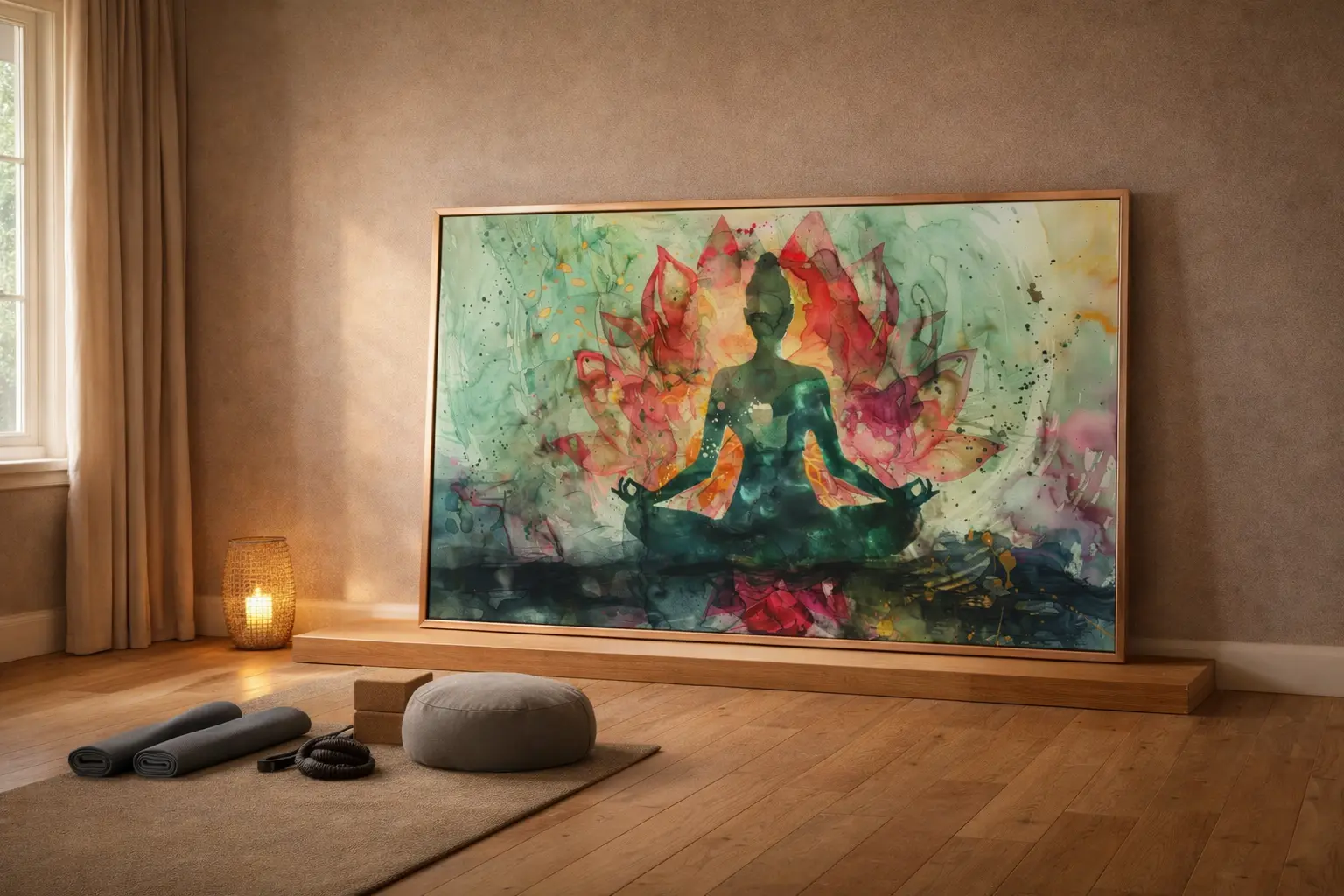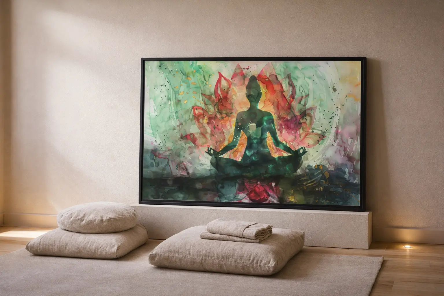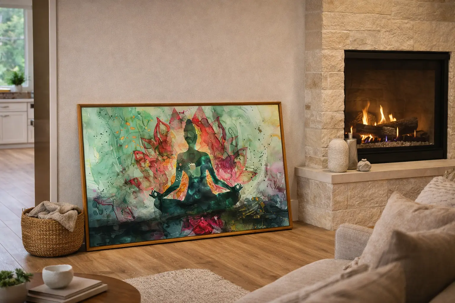 Bring calm, balance, and spiritual elegance into your space with this meditative lotus silhouette canvas art. A vibrant fusion of abstract watercolor textures and serene yoga symbolism, perfect for modern homes, studios, and mindful interiors.