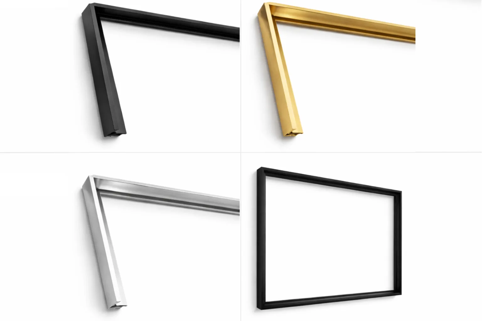 Modern Premium Aluminium Canvas Frame designed to give canvas prints a clean gallery-style look. Available in elegant metallic finishes including black, gold, silver and matte variations.
