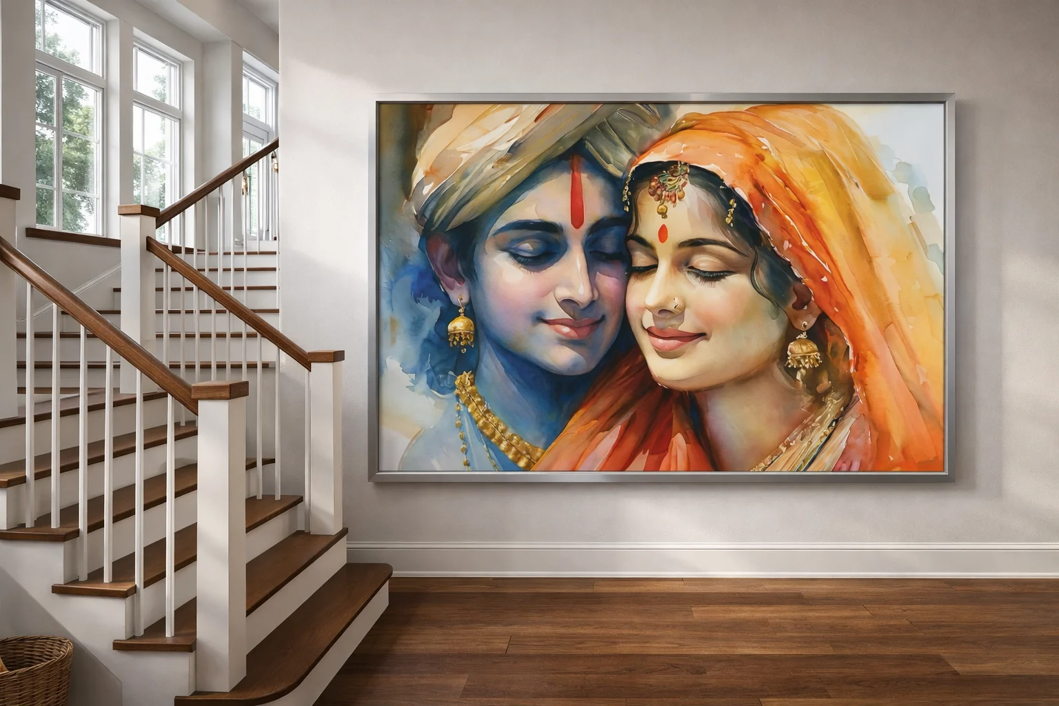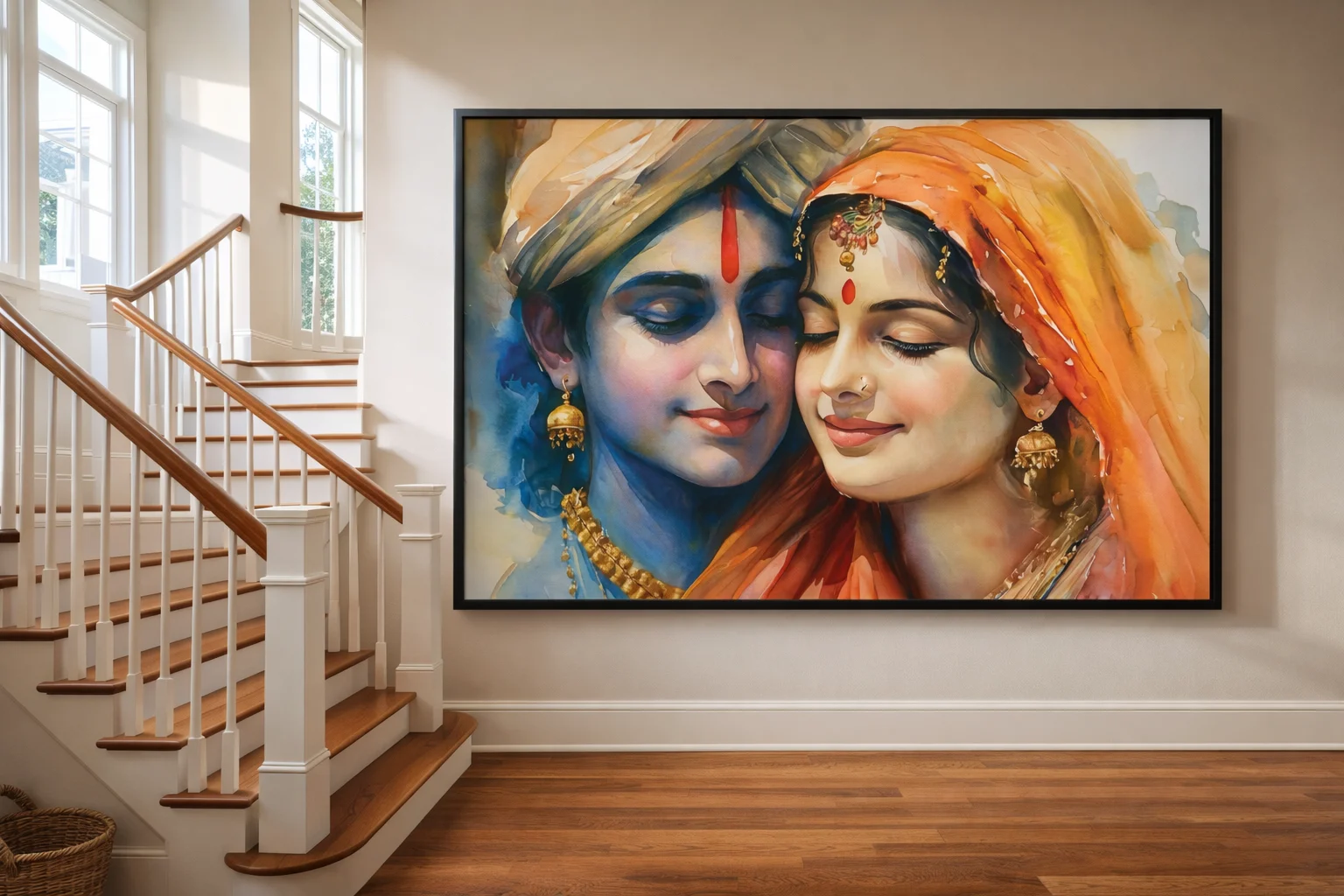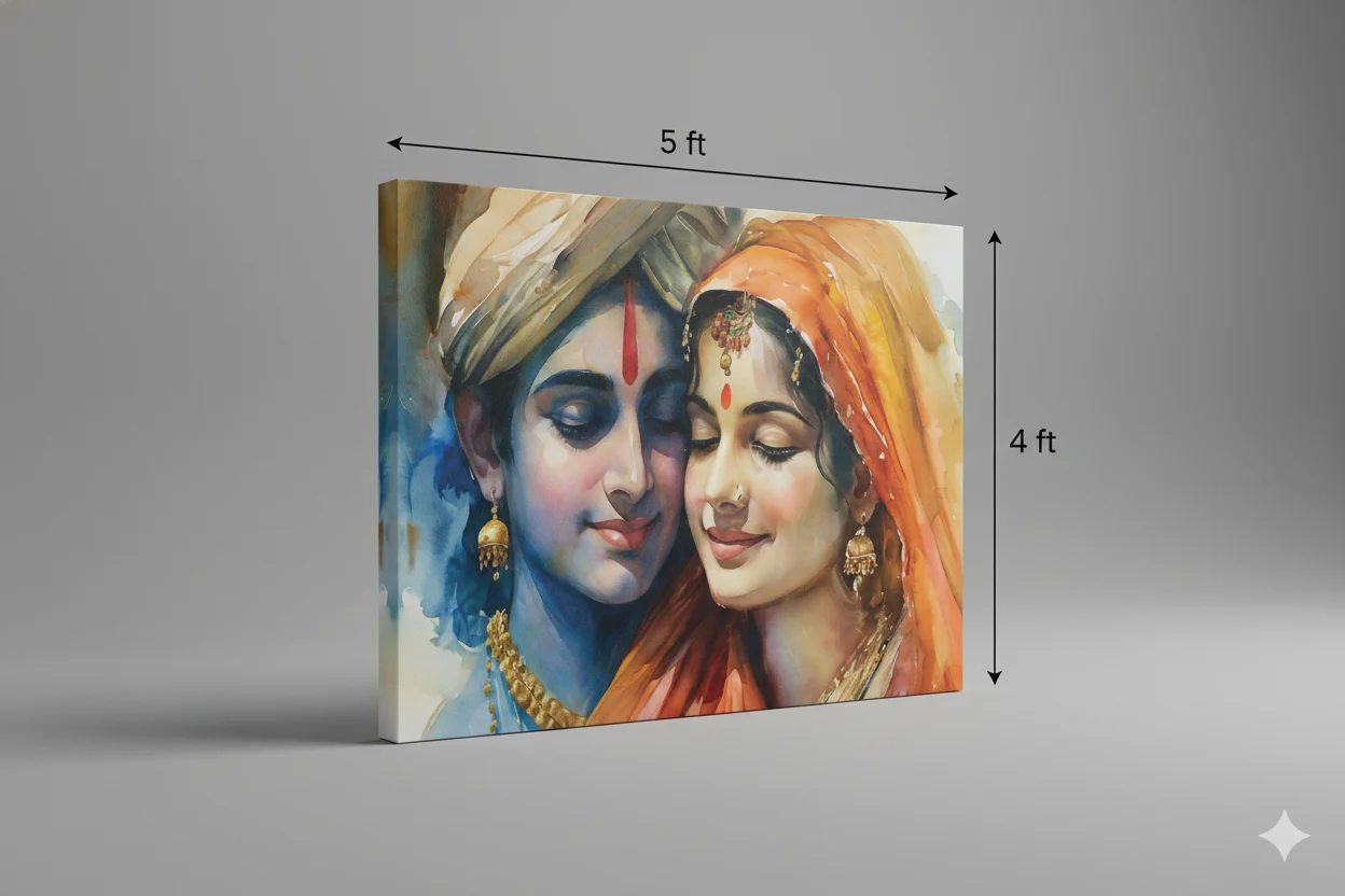 Choosing the Radha Krishna Love Canvas Wall Art (36 × 48 inches) Digital Canvas Print is more than selecting decorative wall art—it is about embracing divine love, emotional harmony, and timeless spiritual beauty within your living space. This artwork represents the sacred relationship between Radha and Krishna, symbolizing devotion, trust, unity, and unconditional love.