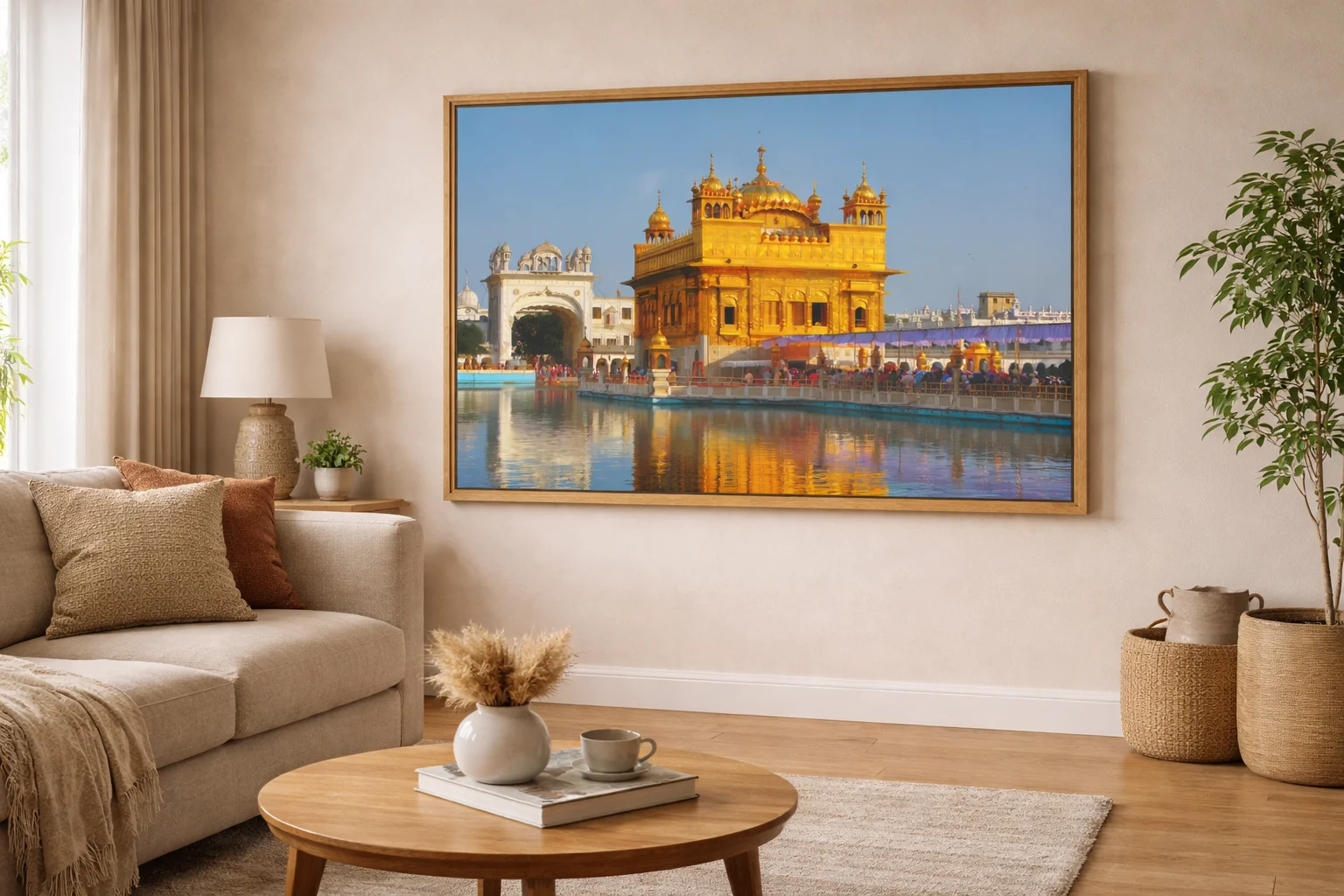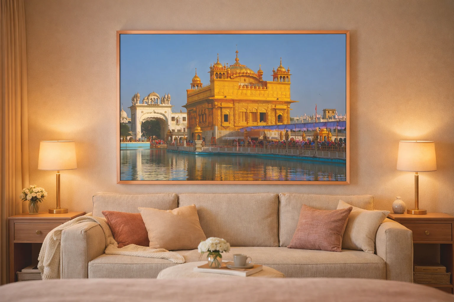 Correct placement enhances both spiritual energy and visual harmony. This Golden Temple Canvas Wall Art is designed to create peace and devotional focus wherever it is installed.